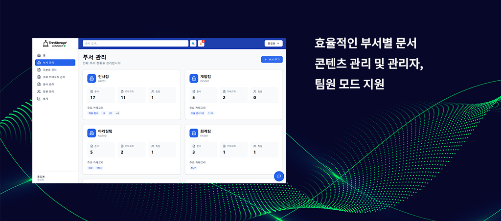 트레이스토리지 커넥트는 보관 문서를 보다 체계적으로 관리하고자 하는 기업 고객을 위한 하이브리드 AI 문서 관리 솔루션입니다.